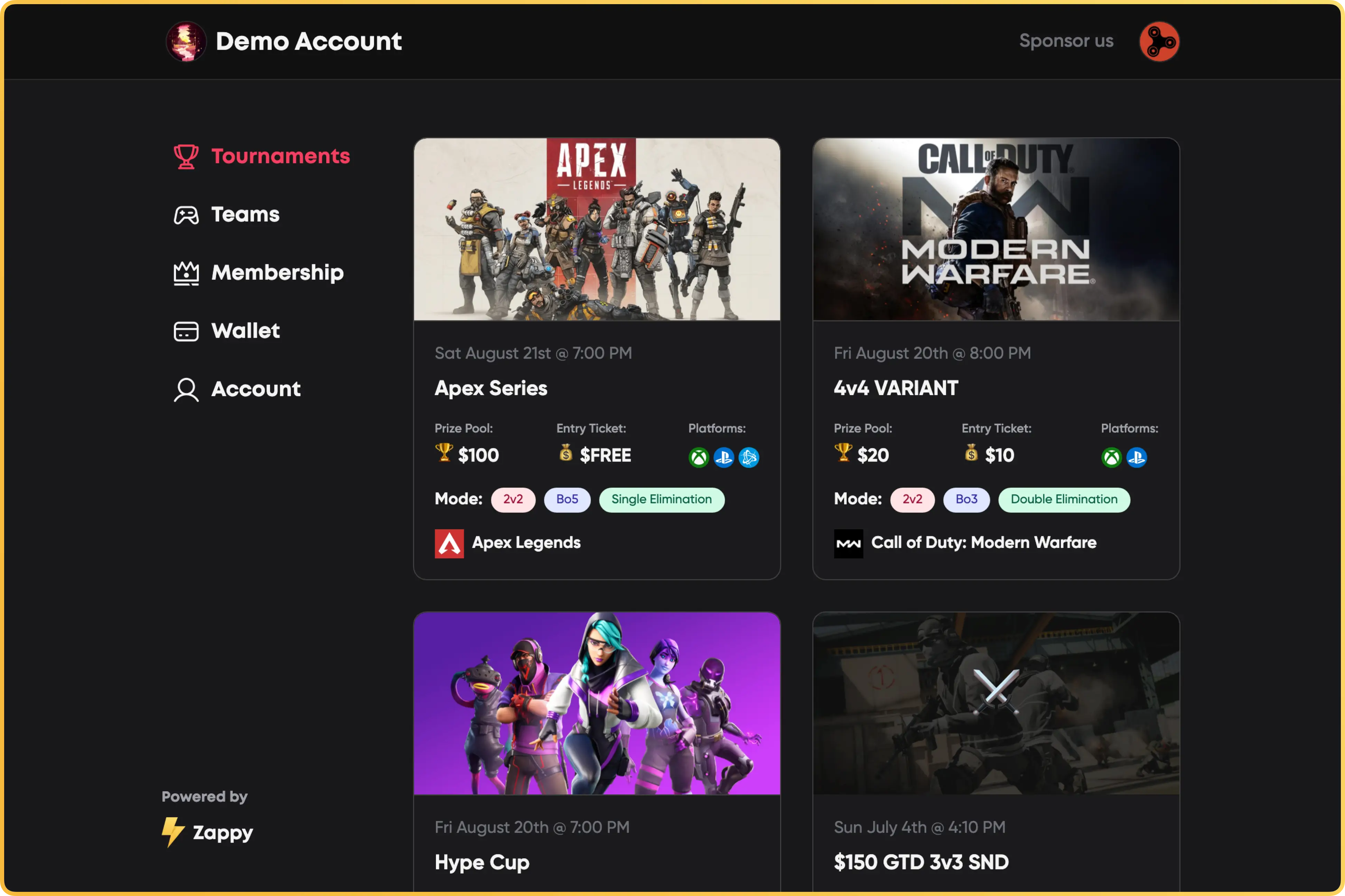 Zappy is 100% free until you start making money. When you begin to host paid tourmanenents or sell memberships, we take a small percentage as service fees.